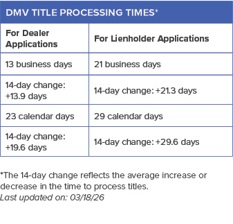 *The 14-day change reflects the average increase or decrease in the time to process titles.